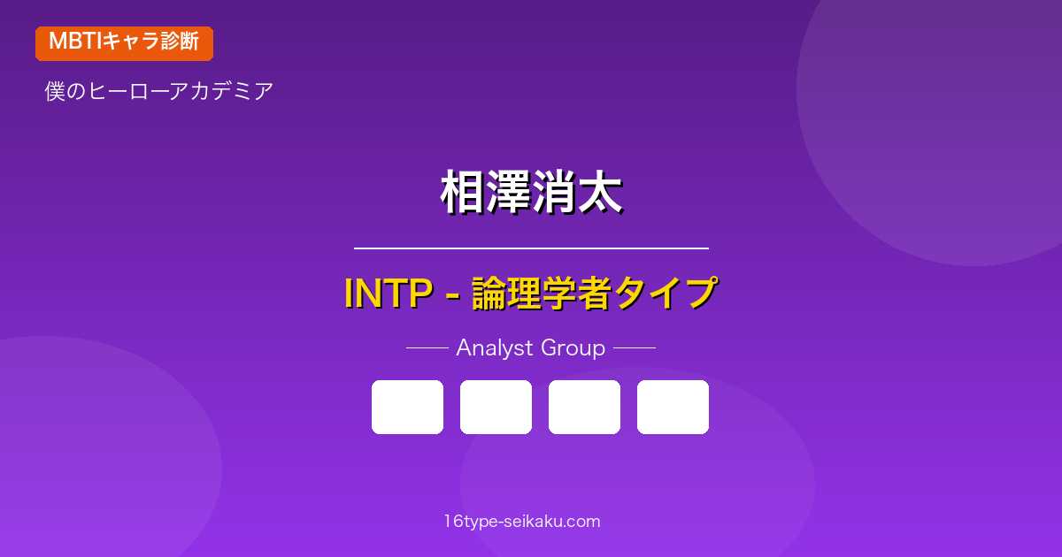 INTP(論理学者)タイプは「内向型(I)・直感型(N)・思考型(T)・知覚型(P)」の組み合わせ。論理的思考力に優れ、独自の視点で物事を分析することを好むタイプです。一般的にはISTJやISTPと分析されることもある相澤消太ですが、彼の行動パターンをよく見ると、INTPの特徴が色濃く現れています。