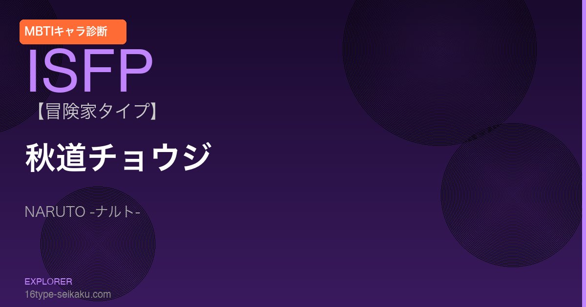 A. 秋道チョウジはI(内向型)・S(感覚型)・F(感情型)・P(知覚型)の4特性を持ちます。NARUTO -ナルト-での行動・判断・人間関係を総合的に分析するとISFP(冒険家)タイプが最も適切です。