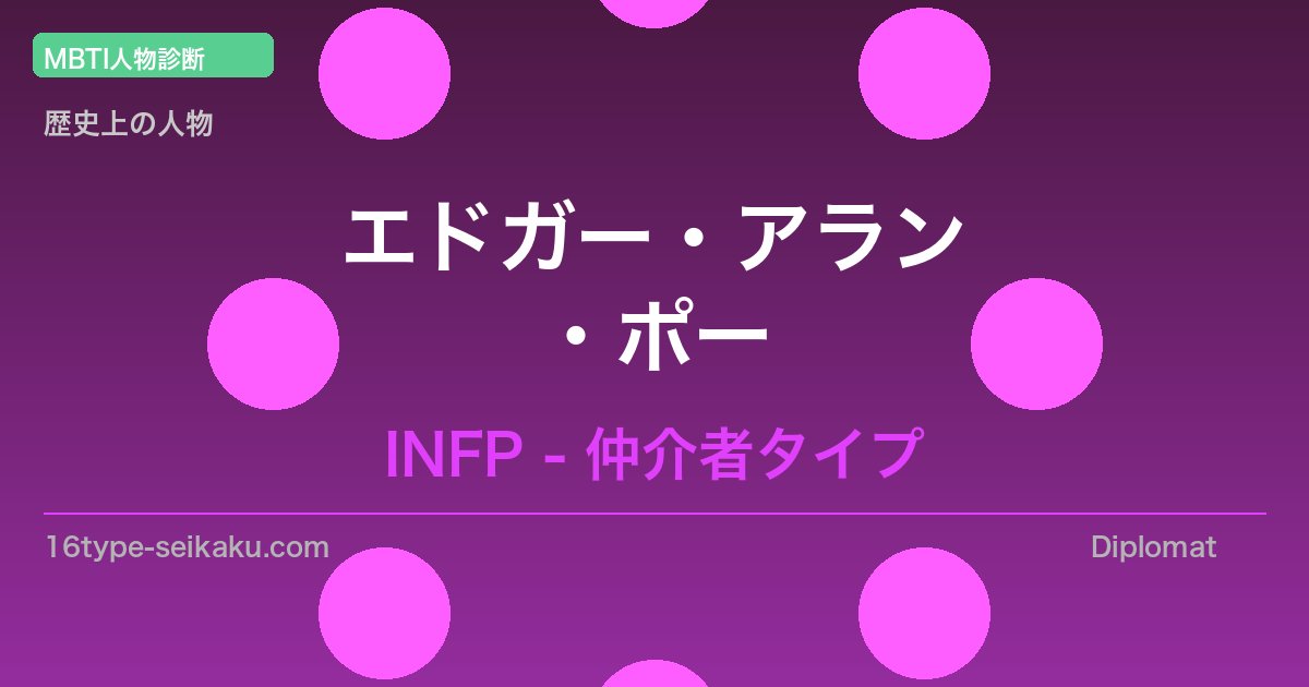 歴史的偉人・エドガー・アラン・ポーは、その生涯と業績・言葉からINFP(仲介者)タイプとして分析できます。