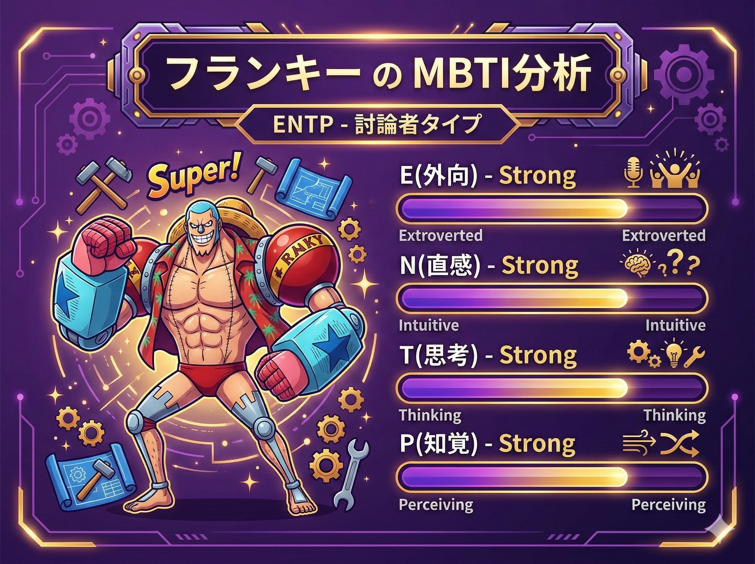 この記事では、フランキーの性格をMBTIの観点から徹底分析し、彼の魅力を深掘りしていきます!