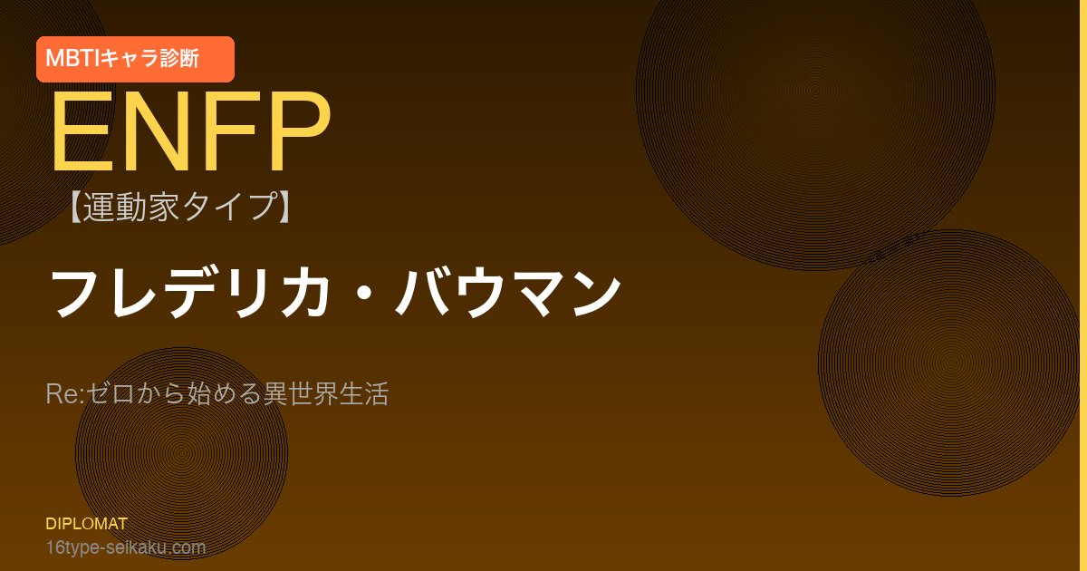 A. フレデリカ・バウマンはE(外向型)・N(直感型)・F(感情型)・P(知覚型)の4特性を持ちます。Re:ゼロから始める異世界生活での行動・判断・人間関係を総合的に分析するとENFP(運動家)タイプが最も適切です。