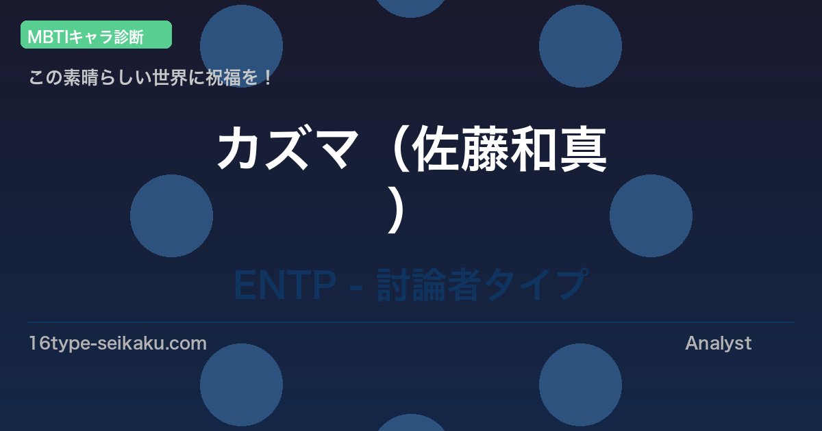 カズマ(佐藤和真)はこの素晴らしい世界に祝福を!に登場するキャラクターで、ENTP(討論者)タイプの典型的な特徴を多く持っています。まずは基本情報を整理しておきましょう。