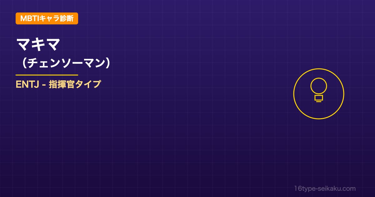 チェンソーマンの中でも最も謎めいた存在であり、読者の心を掴んで離さないキャラクター——それがマキマです。穏やかな微笑みの裏に恐ろしいほどの支配力を隠し持つ彼女は、MBTIで分析するとENTJ(指揮官)タイブに分類されます。