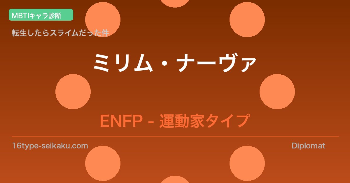 ミリム・ナーヴァは転生したらスライムだった件に登場するキャラクターで、ENFP(運動家)タイプの典型的な特徴を多く持っています。まずは基本情報を整理しておきましょう。