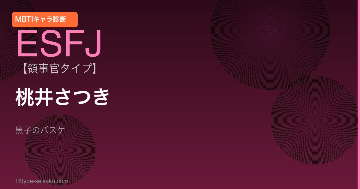 - 桃井さつきはESFJ型の特徴を持ち、協調性と温かさで集団の絆を深め皆の笑顔を守る