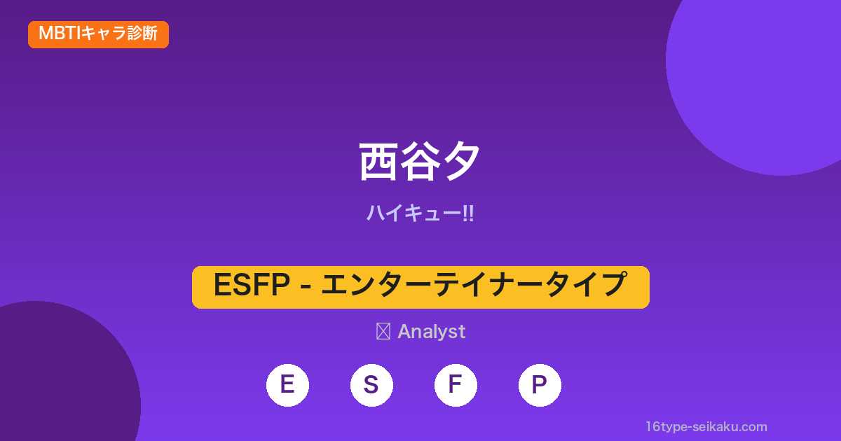 西谷夕がESFP(エンターテイナー)タイプである理由