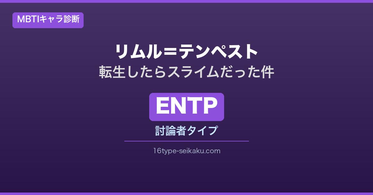 リムル=テンペストがENTP(討論者)タイプである理由を、4軸と性格特徴・名言から多角的に分析しました。