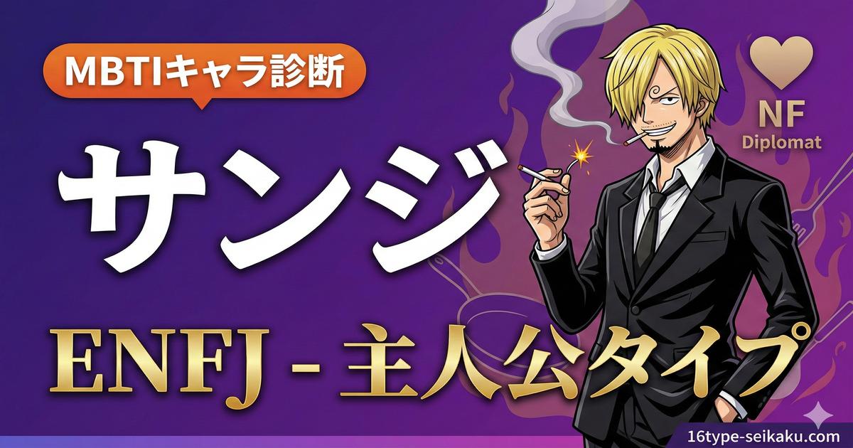 この記事では、サンジの性格をMBTIの4つの軸(E/I・S/N・T/F・J/P)から徹底的に分析し、彼がなぜENFJタイプに分類されるのかを詳しく解説します。さらに、サンジの心に響く名言や、同じENFJタイプのキャラクター、相性の良いMBTIタイプまで網羅していますので、ぜひ最後まで読んでみてくださいね!
