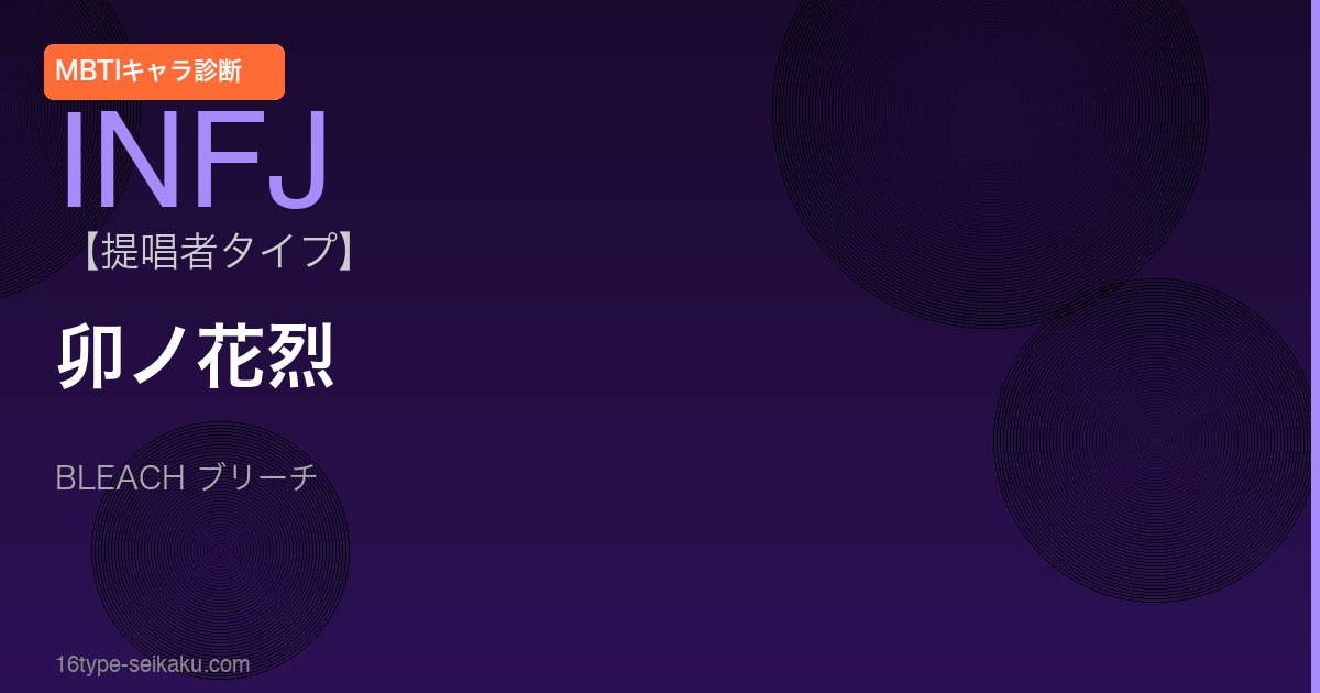 A. 公式発表ではありませんが、卯ノ花烈の行動パターン・価値観・発言内容を分析するとINFJ(提唱者)の特徴に最も合致します。MBTIはあくまで性格の傾向を示すものであり、絶対的な答えではありません。